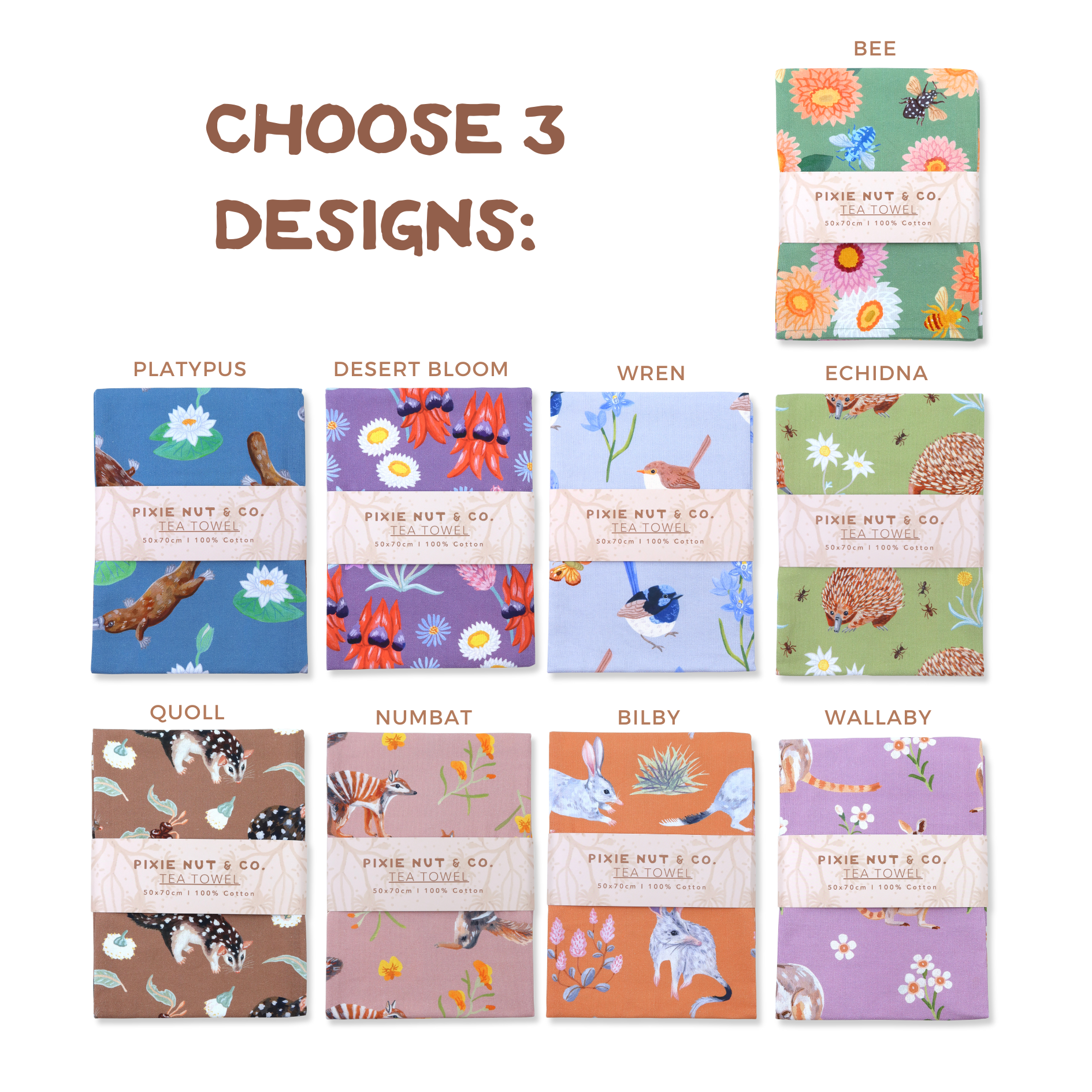 Bring the beauty of the Australian bush into your home with our cotton tea towels. Featuring original Pixie Nut illustrations inspired by Australia’s unique flora and fauna, each tea towel is both practical and artful, a piece you’ll love to use every day! Perfect for brightening your kitchen or gifting to a nature-loving friend, these tea towels are designed to be treasured.