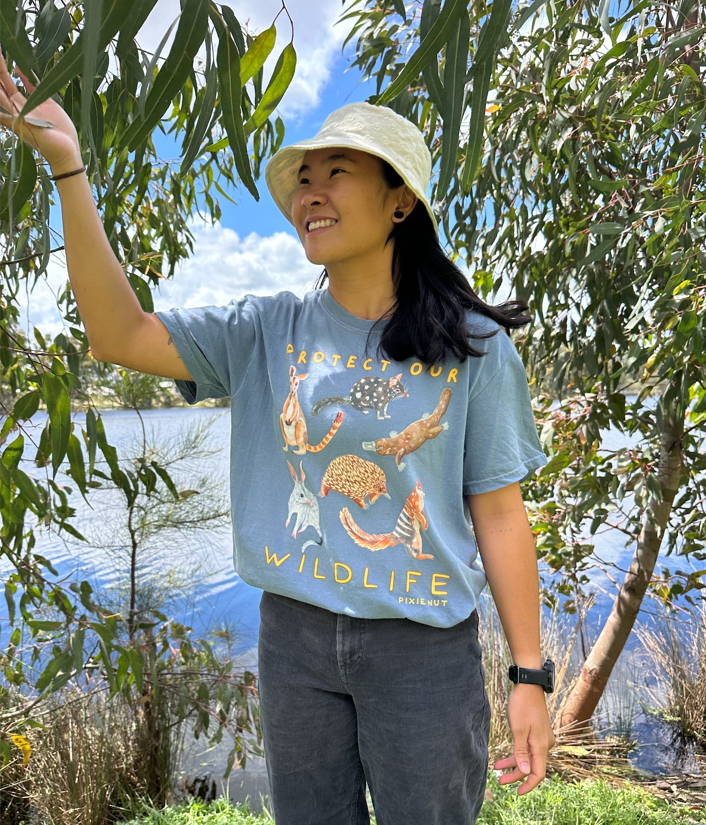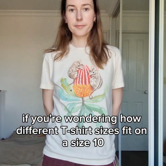 Our t-shirts are printed in Australia on Comfort Colors tees using high-quality Direct-to-Garment printing. DTG uses water-based, non-toxic inks and produces far less waste than screen printing, making it a more environmentally friendly option that still gives vibrant, long-lasting colour.