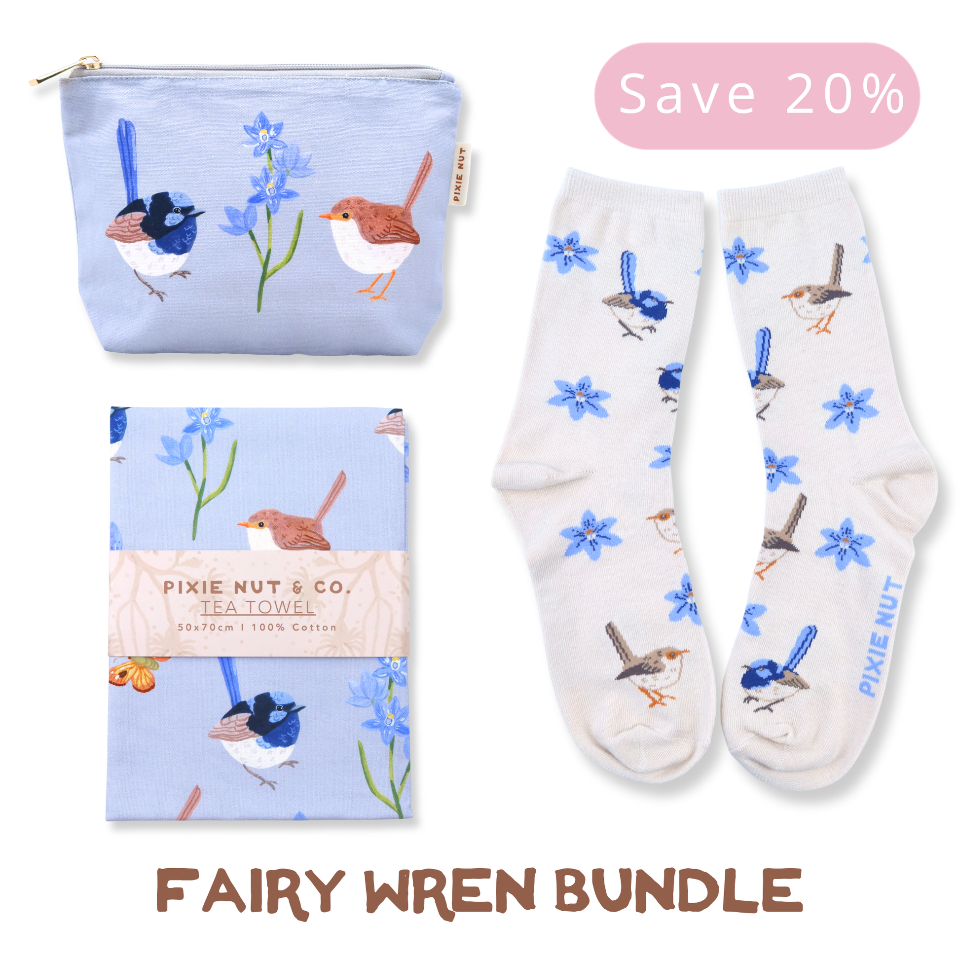 Celebrate the charm of Australia’s beloved wrens with this beautifully coordinated gift set. Featuring Philippa’s original hand-painted design, each piece brings a touch of nature and colour into everyday life.