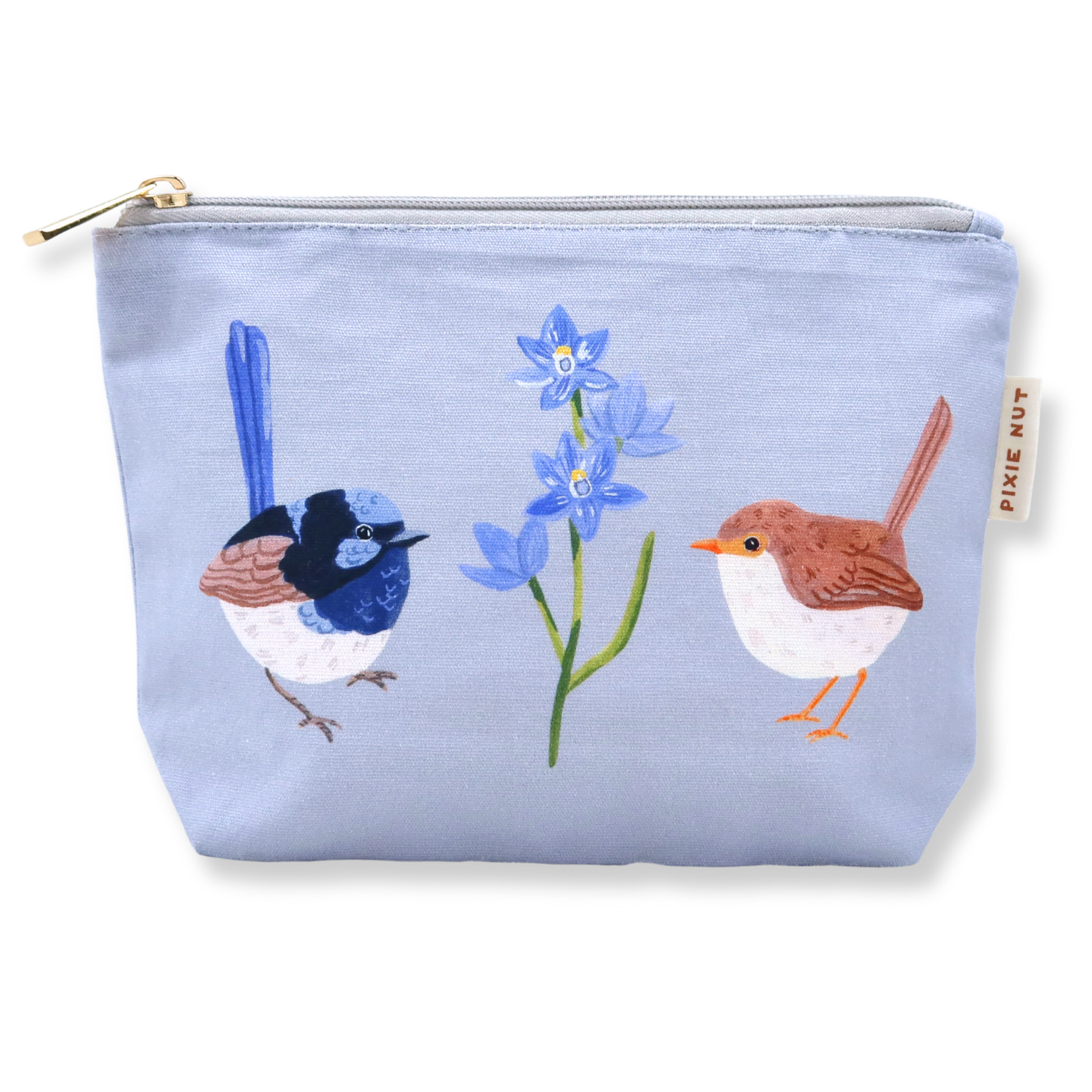 - Wren Makeup Bag – versatile for travel or everyday essentials, made from 100% cotton canvas.